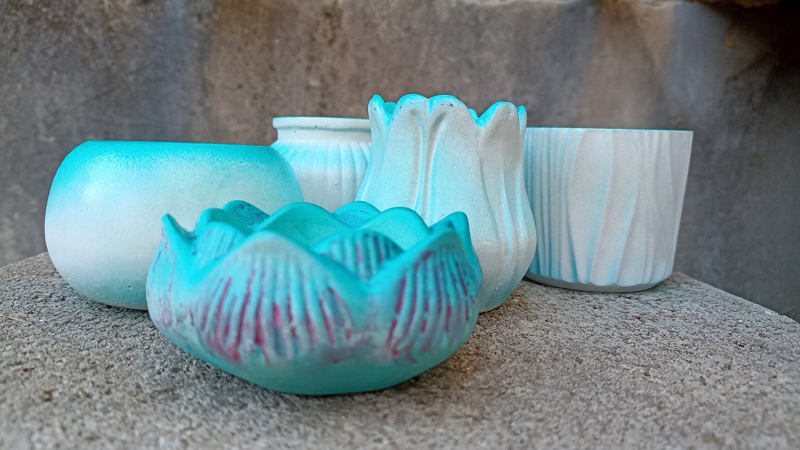 Mécses, gyertyatartó, tároló, extra erős, karcmentes, vízálló kerámia porból készült,öt darabos szett.